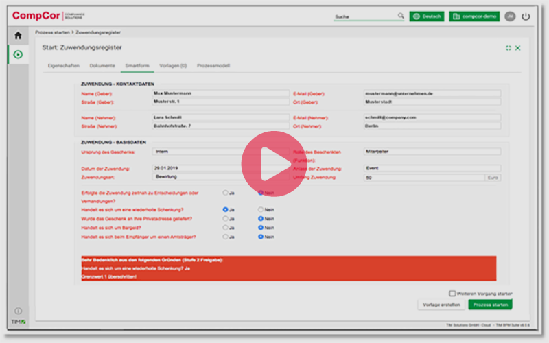 - Zuverlässige Dokumentation der Geschäftspartner-Prüfung, effiziente Grundlage für Berichtswesen. Wesentlicher Baustein für ein CMS